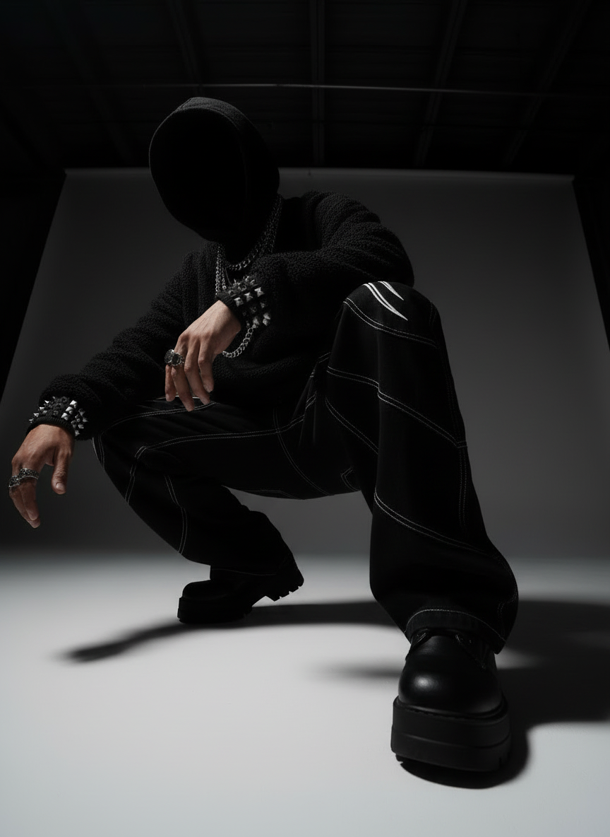 Sharp lines, dark energy, controlled chaos — pieces that elevate your presence without crossing into excess.